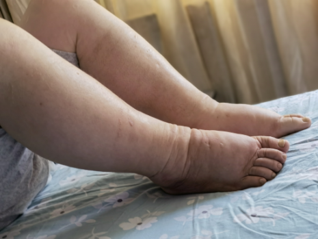 由于心脏功能障碍引发的水肿。清晨双下肢水肿不明显,白天活动后加重,经夜间休息后缓解,同时有心脏病的其他表现,如心悸气短,呼吸困难,甚至有胸水,腹水等。