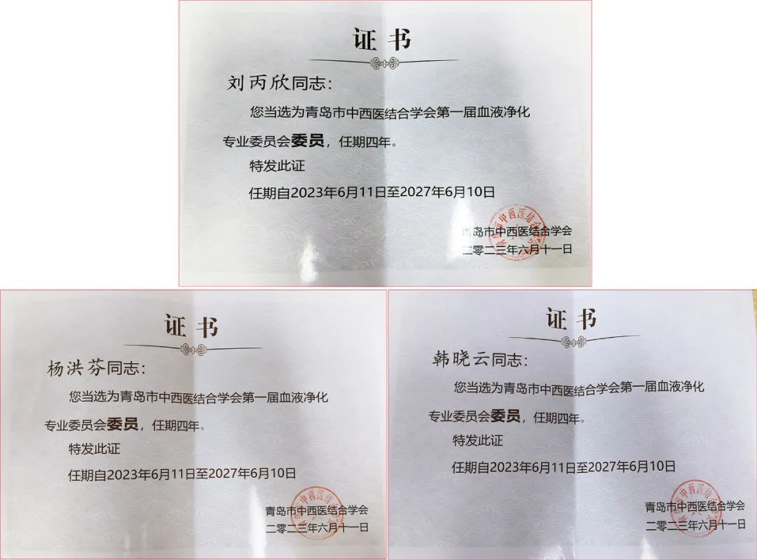 经审慎的遴选评定,大会最终确定并宣布了第一届血液净化专业委员会委员名单。我院刘丙欣副院长、杨洪芬主任、韩晓云医生,当选青岛市中西医结合学会第一届血液净化专业委员会委员。