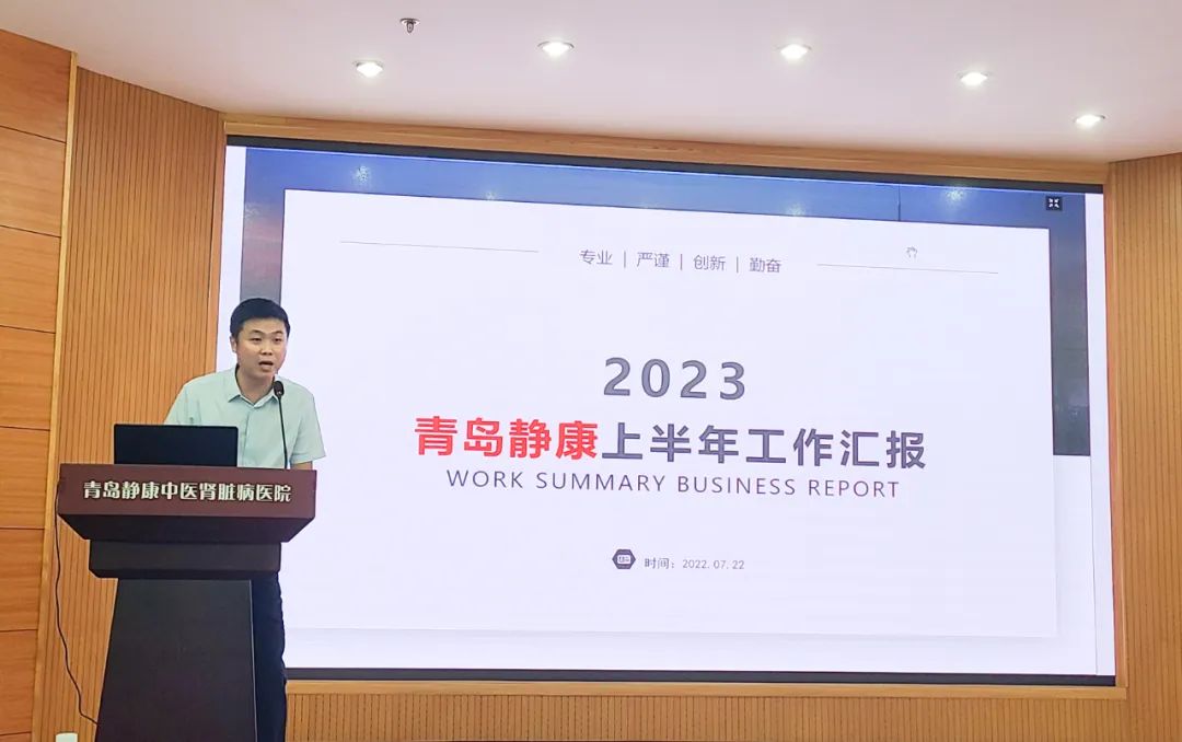 2023年7月22日(周六)上午,青岛静康中医肾脏病医院组织召开2023年半年总结会议。院领导、科室主任及全体职工参加了本次会议。青岛静康中医肾脏病医院党支部书记蒋方同志、王铁民院长、张新安副院长和刘丙欣副院长分别发表2023年半年工作总结分析及下半年重点工作推进。会议由院长助理周威主持。