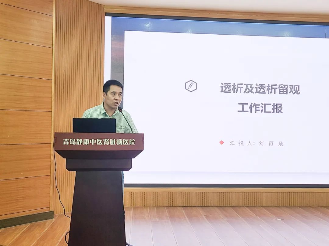 会议组织高效,节奏紧凑。大会伊始,刘丙欣副院长上台发言,重点从血液净化室的医疗质量管理、学科建设和人才梯队建设等方面对血液净化相关工作进行总结。尤其是医疗质量方面,他强调,血液净化室将一如既往地以确保透析患者的生命安全为己任,强化医疗质量和服务质量细节管理;积极借助医院的资源禀赋,尤其是建院20周年的发展契机,不断完善人才梯队结构,强力支撑科室发展;以丰富的医疗经验与贴心的医疗服务,提高透析患者生存质量,延长患者的生命,让透析患者的生命有长度更有宽度。