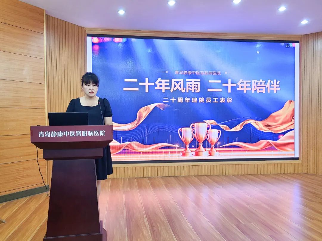 20年春华秋实,20年砥砺同行。值此会议契机,医院特意为入职20周年员工举行了颁奖仪式,旨在铭记和感谢这份风雨同舟、荣辱与共的真情陪伴与热血奉献。职工代表血液净化室杨小苗护士长发言,她回忆了建院之初在院工作时的场景,见证医院的发展和变化,她表示感谢医院的培养,使她从一名普通的护理人员成长为独当一面的护士长,她希望与所有优秀的前辈和伙伴继续携手并肩同行。