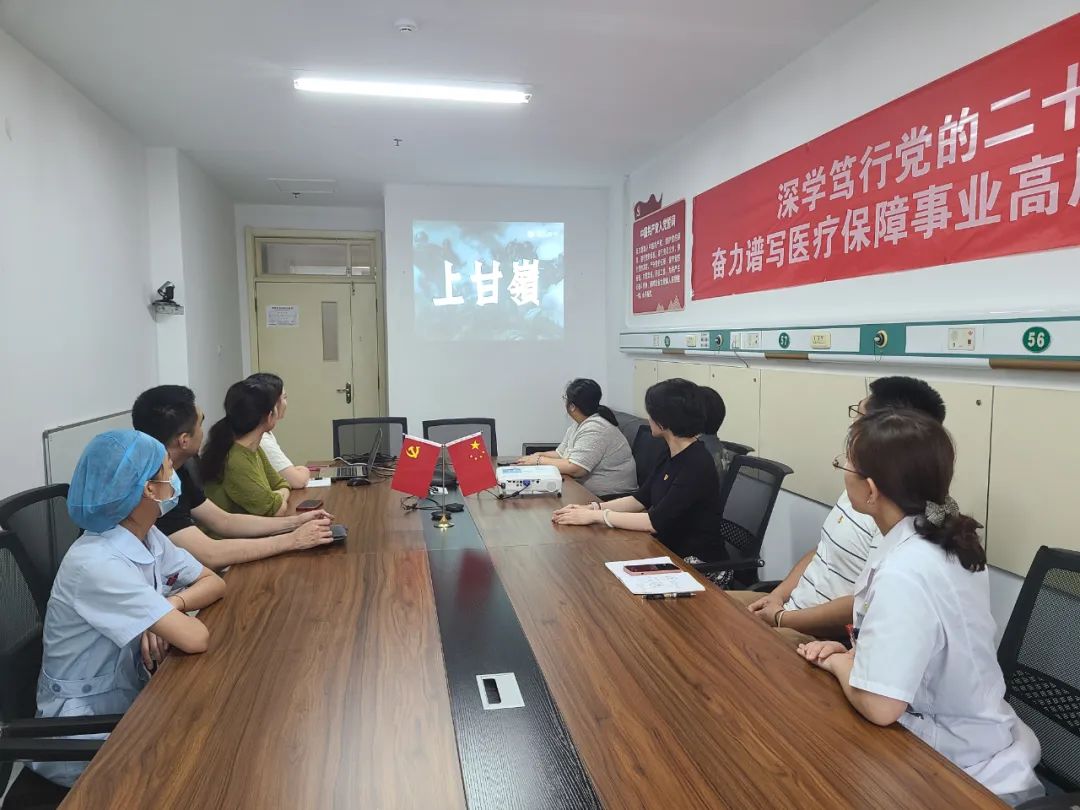 大家被影片中先烈们的英勇事迹深深感动,几度热泪盈眶。影片结束后,党员们争相发言。医生党员代表苏娟同志不无感慨地说:“今天是幸福的,但历史是残酷的,是无数先烈以生命和鲜血为代价,不断奋起、不断抗争、不断奉献,才换来的安稳和繁荣。回顾是追忆,也给予我们前行的动力。在攀登医学高峰的‘战斗’中,白衣为甲,勇往直前。”护士代表尹浩杰在发言中表示,昔日的荣光闪耀在历史的荆棘中,其中我也看到了医护人员的身影——王兰。她将听诊器作为武器,不顾生命危险全力救治伤员。我要以她为榜样,在红色精神指引下,不忘医者初心,牢记健康使命,尽心尽责践行慢病全程健康管理的医疗服务理念,全心全意关爱患者的身心健康。